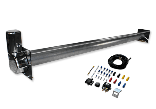 The Open System is our most economical automatic tarp system that can hold up to 40 feet of tarp. The Open System is great for applications where falling debris and loader damage is not a concern. Includes black powder-coated end plates and a 1.3 horsepower electric motor kit with all of the needed wires. Includes: Tarp Roller Tube, Arm Pivots, 1.3 HP Electrical Motor, 12 Volt Switch Kit